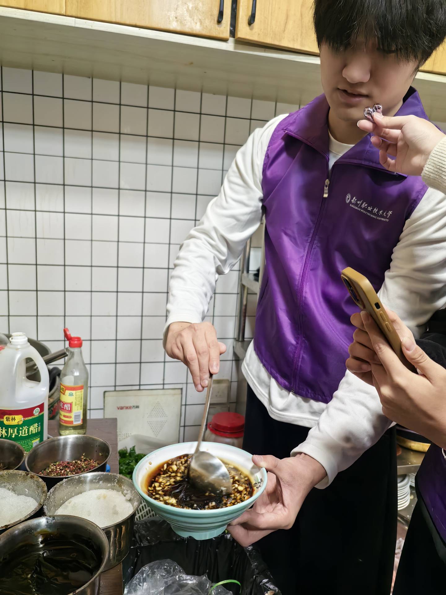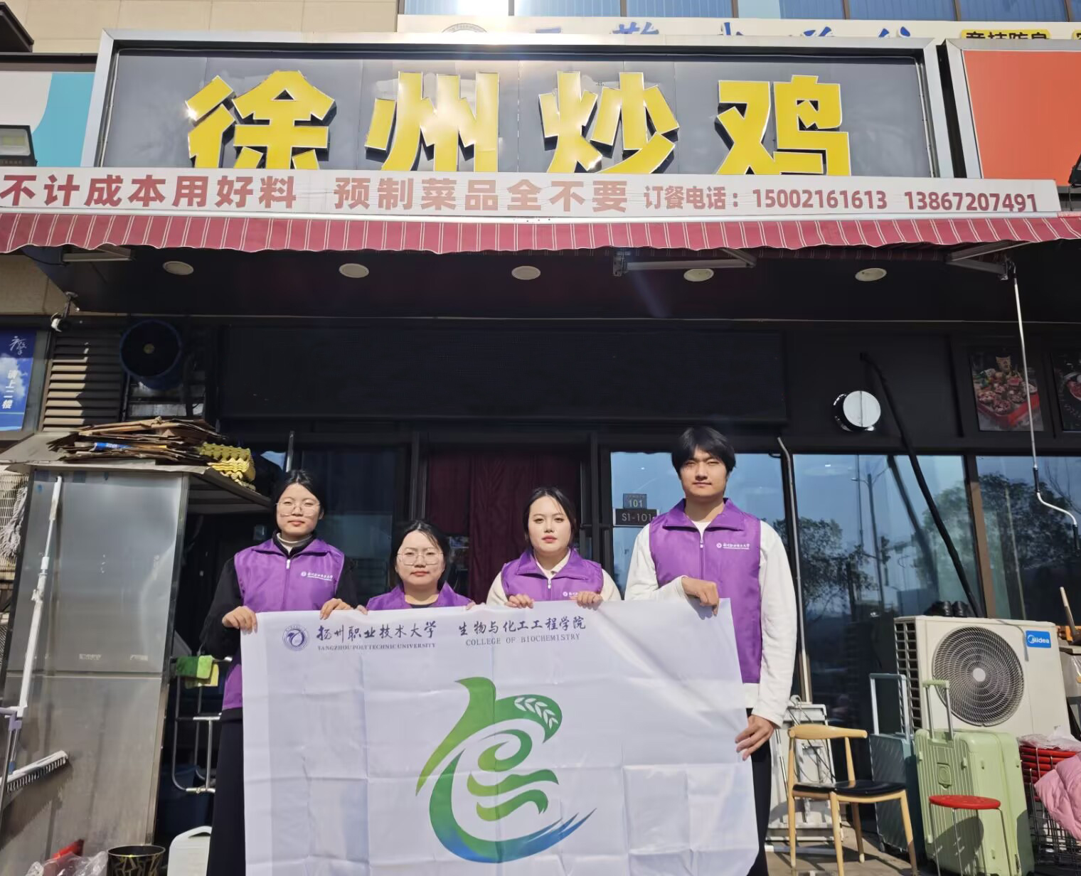 寒假伊始,扬州职业技术大学生物与化工工程学院“食”代达人社团负责人朱禹蒙,带领社团的徐州籍成员们开启了一场别样的寒假社会实践。作为五省通衢的运河重镇,徐州的美食文化始终与京杭大运河相生相伴,社团成员们走进本土“徐州炒鸡”店,以沉浸式探店吃播的形式,运用网络媒体解锁美食背后的运河密码,让浸润着运河烟火气的淮海风味香飘全网。