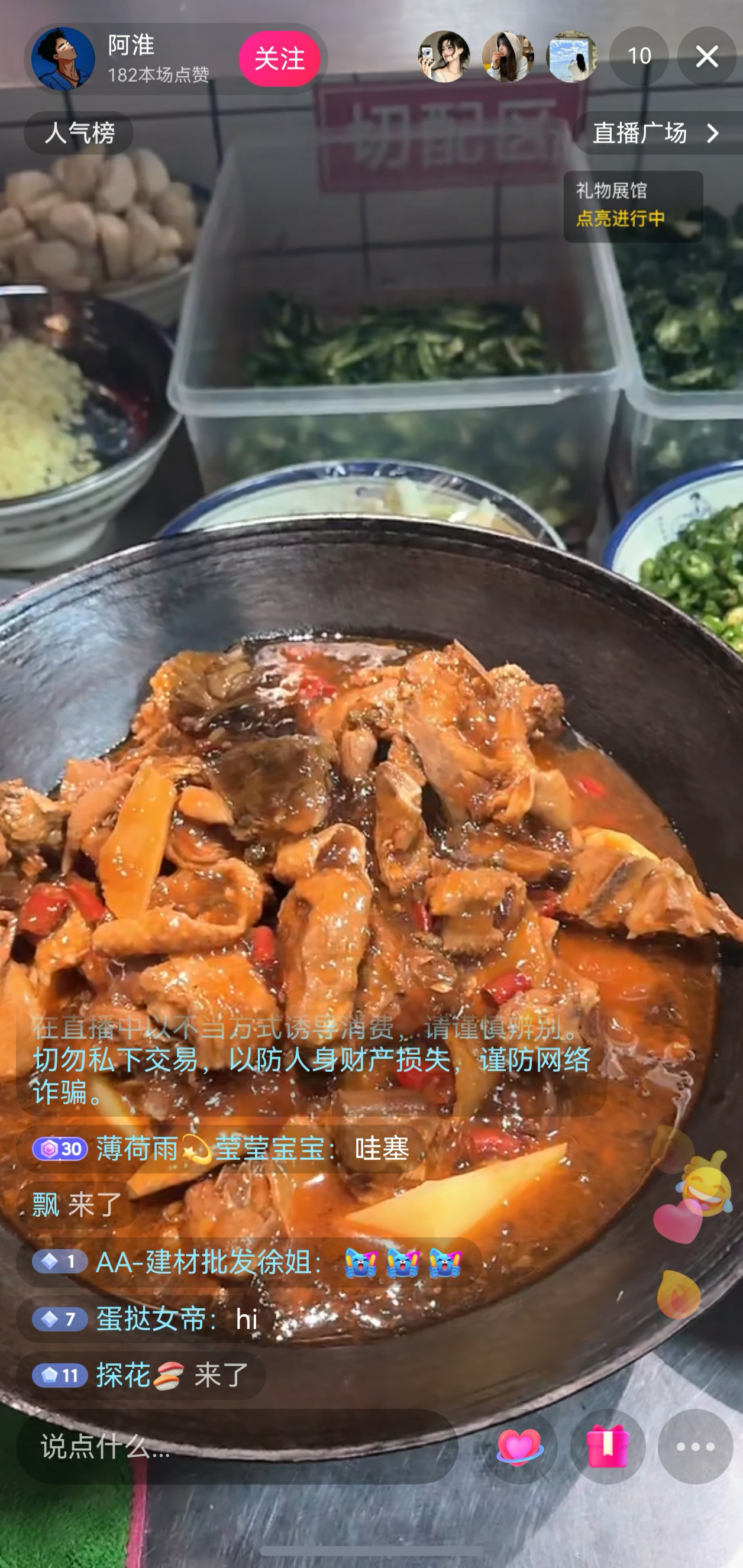 为让网友们更直观地感受徐州美食的制作魅力,社团成员深入后厨揭秘制作玄机。店家老板王锋、冯贵芳夫妇俩热心地现场示范五道美食的制作要领,毫无保留地分享烹饪诀窍:地锅鸡烹饪需拿捏“饼要薄厚均匀,炖制不掀盖”的火候关键;拔丝熬糖讲究“快准狠”,才能拉出绵长糖丝;盐豆炒鸡蛋则遵循“先炒蛋后炒豆”的顺序,让风味层次更鲜明......详实的步骤讲解与实操示范,让网友沉浸式get烹饪技巧。社团成员王晓晓更是现学现卖,尝试配比蒜爆鱼的灵魂料汁,他按照冯师傅的交代,按照“蒜泥100克、陈醋30克、酱油15克”等八味调料精准配比,最后放上干辣椒泼上七成热的油,成功复刻出地道风味,直播间弹幕满屏“想学这碗神仙料汁”。