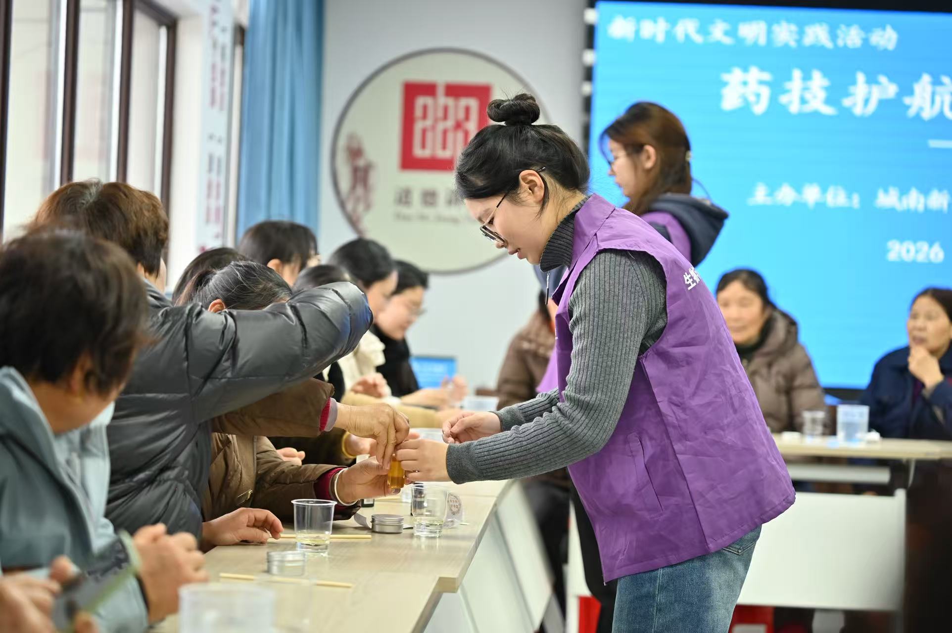 科普分享后,手工护手霜DIY环节拉开帷幕,成为现场最受居民欢迎的环节。庄娴等5名志愿者化身指导老师,以药厂乳膏生产工艺为蓝本,将药品专业知识融入实操教学。从75%医用酒精消毒器具,到油水两相制备、同向混合搅拌,再到低温添加精油、冷却灌装、包装贴标,志愿者对每个步骤细致讲解示范,还为居民解读植物油、乳化剂等核心材料的作用原理,并进行一对一指导。居民们围在一起动手操作,现场氛围温馨热烈。“第一次亲手做护手霜,“小老师”们教得特别仔细,不仅做出了无酒精、无**的专属护手霜,还弄明白了制作的科学原理,太有收获了!”社区居民王阿姨捧着自制的护手霜笑着说,这样的活动有趣又有料,让这个三八节过得别样有意义,希望社区以后能多开展这类实用的公益活动。